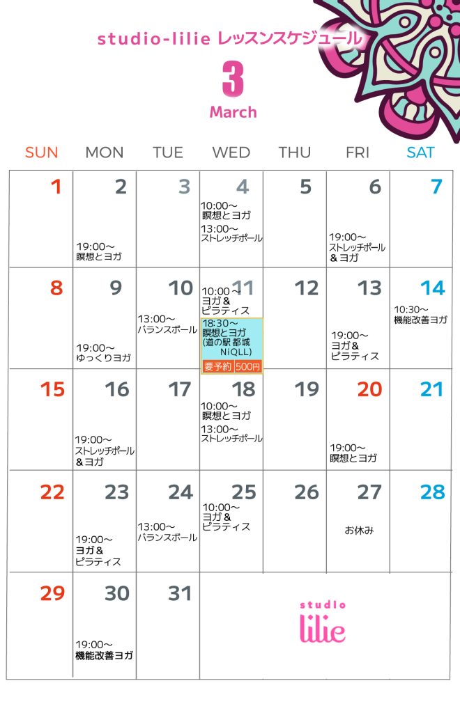 3月レッスンスケジュール